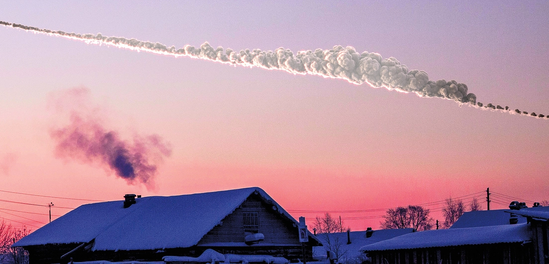 A superbolide that entered Earth's atmosphere over Russia, with a diameter of about 20 meters. The airburst occurred at an altitude of 29.7 km, releasing energy equivalent to 400-500 kilotons of TNT. The event was captured by numerous dashcams, making it one of the most documented meteor events.